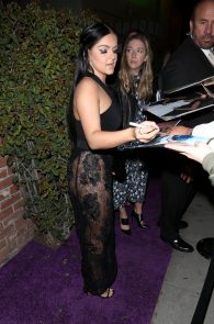But this time, it’s all about that ass! She attended the Vanity Fair & L’Oreal Paris Toast to Young Hollywood and continued the party at the Deliah Restaurant, where she stopped for a few autographs. I guess though, some people were there waiting for her to turn around, it’s not that her smile is not pretty… But she wore a sheer lace skirt over a cut out thong body. Suffice to say that the see through lace didn’t hide her cheeks, in fact she looked hotter than if she had been in a thong only. Her legs looked impeccable also, the simple heels perfectly fitted the outfit. All in all – Yes, Winter! Come more often!