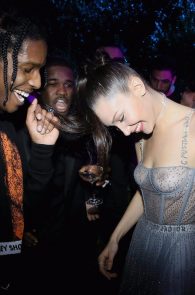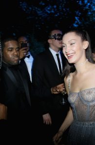 What did I just tell you?! Only a couple of days before we had our belle Bella Hadid showing nipples everywhere. I guessed then it was as a coping mechanism after her break-up, we all know how love hurts when you’re 20. I seem to be right, we have tits and nipples, boobs and nips and a stern face today as well. She wore a see thru dress at Dior Ball in Paris, I mean see through, we can read the brand of her undies. We could even read the small imprint “Made in a third world country” if we wanted, that transparent her dress was!