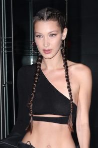 Now that is a tiny waist! She looks like you could wrap her with one arm and if you squeezed her tight – she might just break! Such lovely and delicate features almost ruined by laces and weird fashion! She was on her game though with the one shoulder top, almost see through in the flash lights! So we still had a view of the shape of her nipple and boobs. And since she is a super model, that’s worth something! A sweet addition were her braided tails, that were as well reminiscent of the 90’s! If you prefer something else from Bella, don’t worry, we have her in our gallery multiple times and you can check her out here for example!