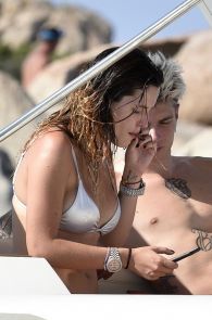 Bella Thorne super hot in bikini while on holiday in Sardinia. Bella can be such a hot girl when she wants to. Here she is, showing off her hot body. You gotta love the fact that she’s smoking pot. Enjoy! :)