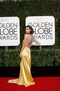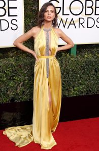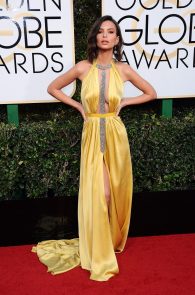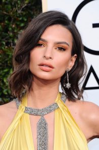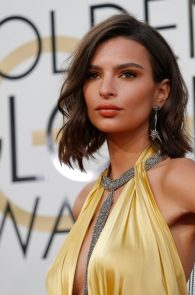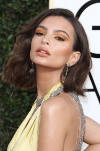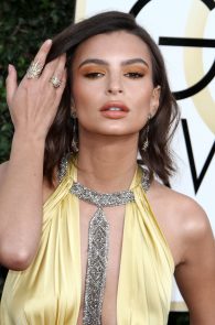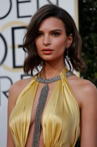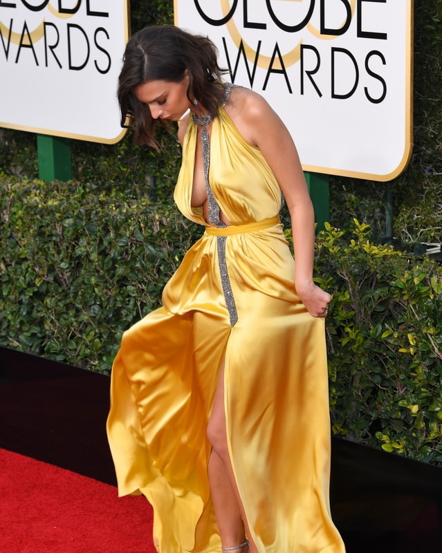 Hot damn! The 74th Annual Golden Globe Awards took place in Beverly Hills a couple of days ago and holly molly did our cuties rise to the challenge! We have here the insanely hot Emily Ratajkowski, setting an impossibly high bar for other ladies around this blue globe – I’m talking about Earth if you are dizzy from the excitement and didn’t get it. She is hot as f*ck going braless in a yellow satin dress with a generous side boob; upon which we can feast our eyes time after time.