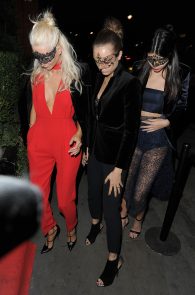 Kendall Jenner and Cara Delevingne are leaving Eva Cavalli’s birthday party in London and boy, what a party it was! You only have to look at that net of a dress to picture it. You don’t even need to use your imagination because it’s a fair expose: a lovely body with good for grabbing buttocks! It’s a bit ironic though, that they wear masks and crazy sexy clothes… As I see it, they should have gone only with the masks! ;)