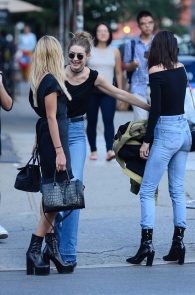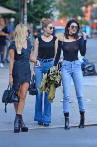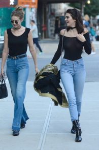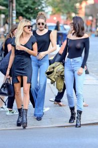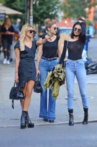 Kendall Jenner wearing a totally see through top and no bra, through which her boobs and pierced nipple are perfectly visible while out and about with her friends in New York City. I admit I was pretty shocked (not!) when I saw these pictures. I mean, why bother? She should better walk around topless. Anyway, enjoy!