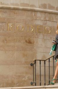Kimberley Garner turned a few – actually more than a few – heads around while she paid Tiffany`s a visit. Her summer dress not only had an open back but was good to us and showed Kimberley’s ass cheeks! Would you look at that beauty of a booty?! The swimsuit designer had us worried though when she sat on the cold, rough stone, we don`t want her to hurt her tushie, do we? ;) She paired her green stricking eyes with a pair of hot devilish heels, an outfit on its own. Would you wear just that please?