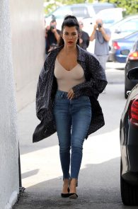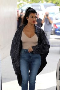 We have Kourtney Kardashian arriving at Casa Vega in Sherman Oaks, ’nuff said! That is, you expect her to go braless and make us really happy! And today, besides going without a bra, her blouse is see through so we get the nicest view of her nips and boobs. And with a Kardashian, everything is inflated… Her boobs are big, her ass is huge, even her hair is long and fluffy! But what really strikes me are her shoes. Those thin stilettos are capable of supporting a barbie with really big figures without snapping. They prolong the thin ankles she has, contrasting with her wide thighs…