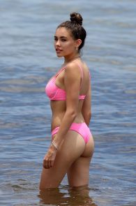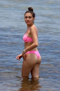 Madison Beer wearing a thong bikini in Miami. She was seen wearing a two-piece pink bikini, showing off her perfect body and ass. And this is not all. If you take a closer look, we can even see some great cameltoe shots. Enjoy the pictures in the gallery below!