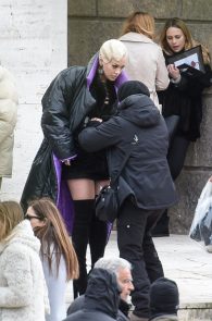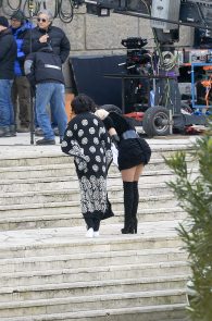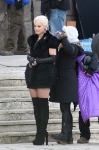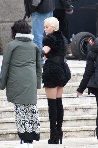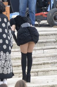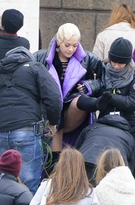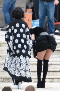 What happens when a girl wears the shortest dress possible? By all means she should stay upright, even be carried around while she looks fabulous. So I assume it was not by mistake the bend that gave the internet a seizure. The bending queen is no one other than Rita Ora on the set of Wonderwell in Rome. That’s a wonder-ass! Not to mention the [possible] pussy slip! I will call it an upskirt with a view and I want to rent the first room there! Hell, I want all the rooms available!