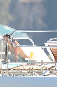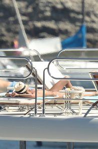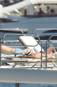 Sara Sampaio topless, sunbathing, on a yacht in Villefranche-sur-Mer, France. We care or not? We should, since this girl is an angel. If we are looking at that ass in that sexy white thong, we will have a wonderful story to talk about. This butt could go hot, as in really hot.