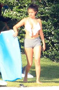 Selena Gomez was still with her pals in Mexico having fun at the beach, but we must ask… Selena girl, what’s up with those shorts?! Yes, your tits look great in that fancy white bra! Yes, your face is as pretty as ever! But we wouldn’t let those shorts pass by us… unless… unless you unleash a huge cameltoe on us, just as you did here; for which we can forgive the shorts! You might think we do, but we don’t keep track of kilos or pounds here, actually, one simple rule is that if you’re showing, you can bet your ass off, we’re watching! So we love the breasts, the ass cheeks and the cameltoe, and be sure we’ll keep an eye on anything you might slip!