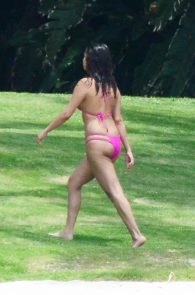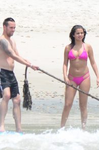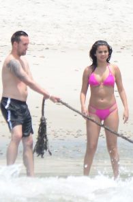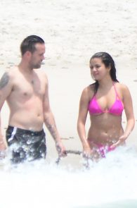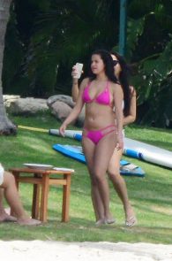 The bikini season is upon us! May it last long and be prosperous! In the pink zone we have Selena Gomez, actually pink going to fuchsia, her bikini features an under sized bra and a hip decoupage thong! And we are lucky enough to catch her underboobs and the cold pokies, as she is having fun in Mexico with her pals! That’s a plus because the entourage was also in bikinis and an array of booties was on display! There is no denial Selena stole the show and it’s no wonder since her breasts are exceeding the bra’s limits! Too bad they didn’t expand to our grasp, there’s no telling the greatness of the motorboat we would have enjoyed!
